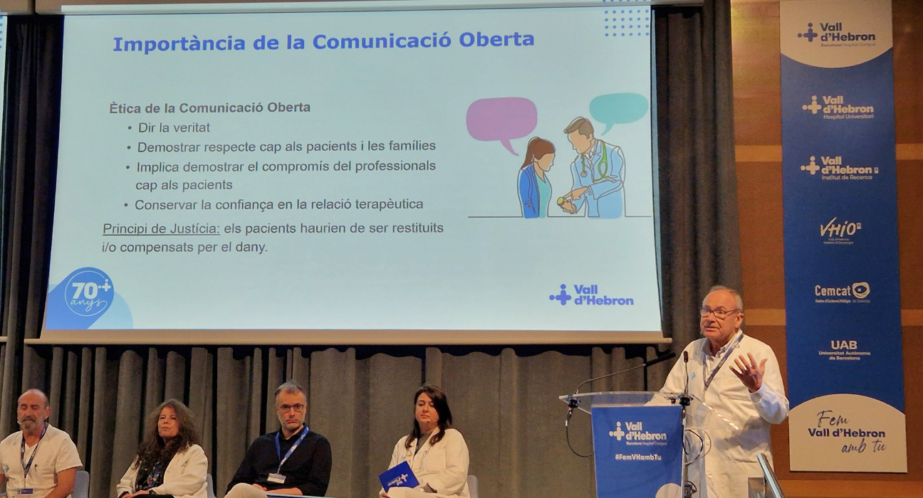 El divendres 21 de novembre, l’Hospital Universitari Vall d'Hebron ha organitzat la 1a Jornada de Comunicació Oberta d’Incidents de Seguretat del Pacient. L'objectiu d’aquesta trobada ha estat crear un espai de debat i d’aprenentatge col·lectiu per promoure una actitud positiva envers les polítiques de seguretat i organitzatives, que no només busquen evitar els incidents de seguretat i minimitzar-ne la repercussió, sinó també oferir suport i acompanyament a les primeres, segones i terceres víctimes.